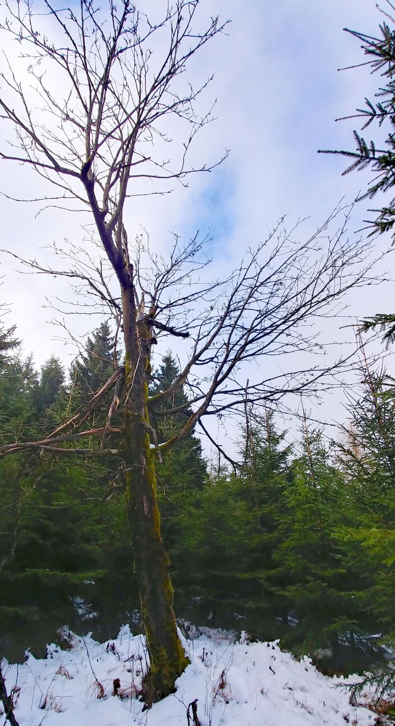 Der „Vuuchelbeerbaam“ ist die vielbesungene Charakterbaumart des Erzgebirges. Doch offensichtlich geht es den meisten alten Vogelbeerbäumen heute gar nicht gut. Bereits 2010, als im oberen Teil des Landkreises Sächsische Schweiz - Osterzgebirge Kandidatenbäume für neue Naturdenkmale erfasst wurden, gab es einen Aufruf „Grüne Liga sucht die Super-Ebsche“ [2] - ohne viel Erfolg. Alle vorgeschlagenen Exemplare dieser Art erwiesen sich als schwer geschädigt bis halb tot. Eine Eberesche findet sich bis heute nicht im Portfolio der offiziell unter Schutz stehenden Naturdenkmale.